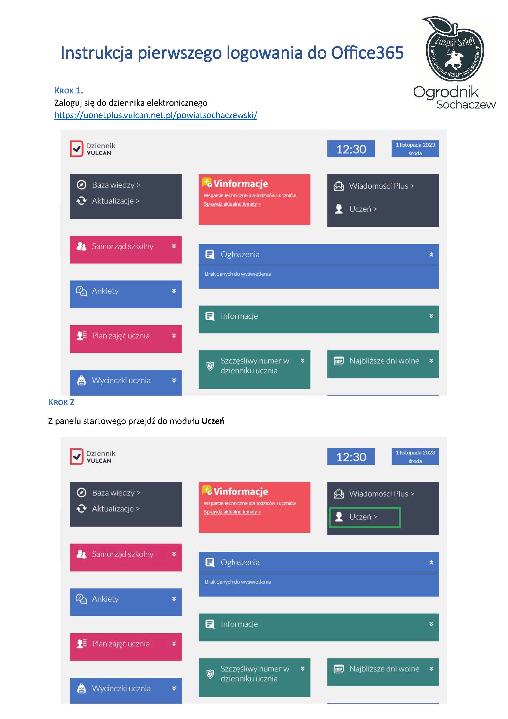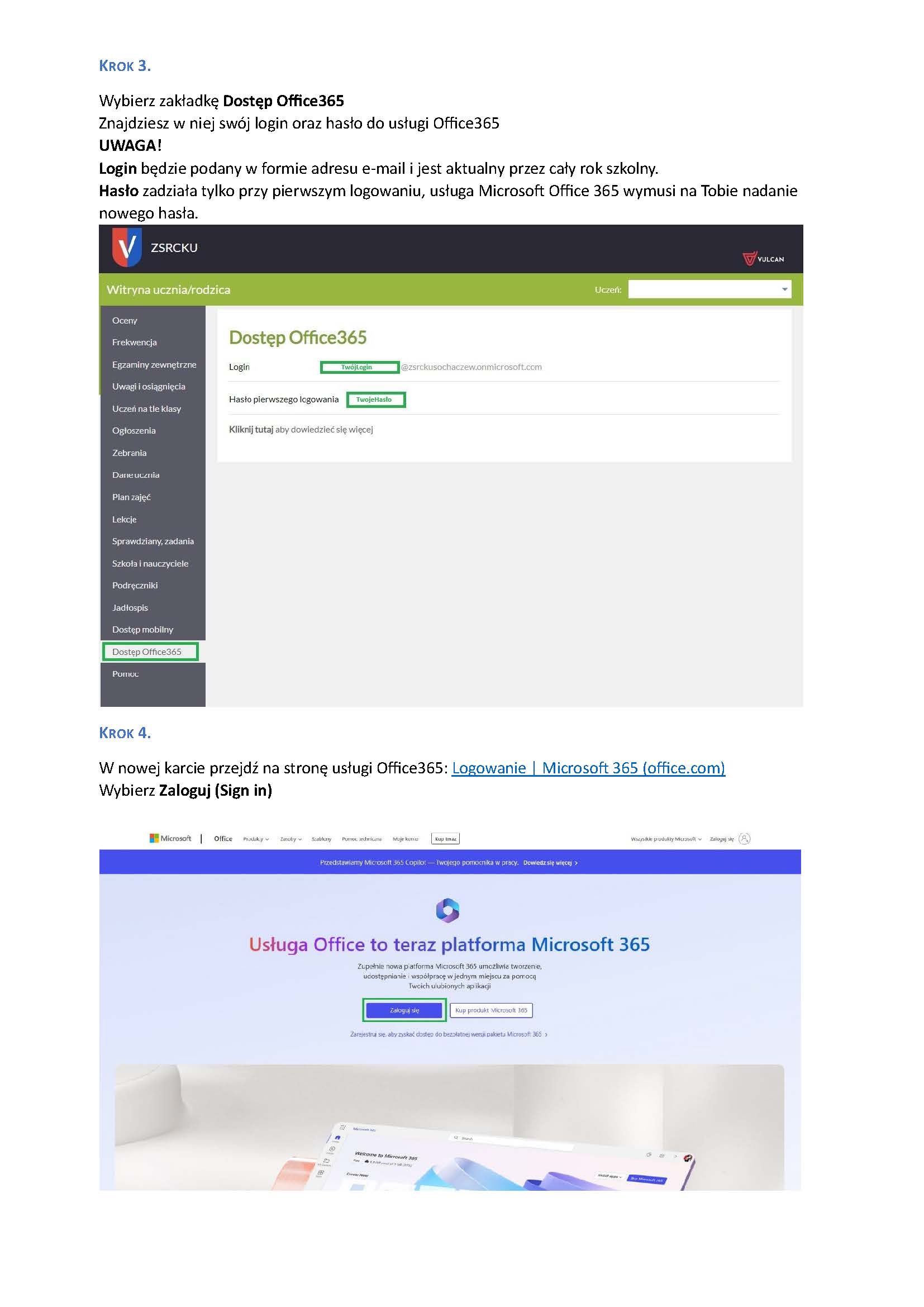 Instrukcja logowania Office365 A A A Instrukcja pierwszego logowania do OFFICE 365 i TEAMS Logowanie dziennik Vulcan - powiat sochaczewski