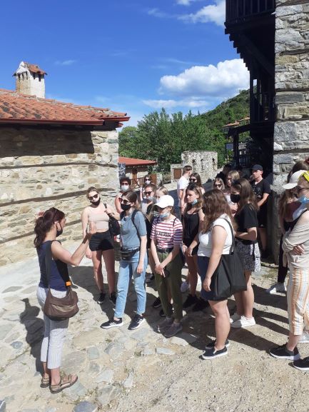 - Stary Pantaleimon, który odwiedziliśmy w trakcie popołudniowej wycieczki po zajęciach. To kamienne miasteczko o około 200-letniej historii, wzniesione na zboczach masywu olimpijskiego. Mieszczą się tutaj tradycyjne, kamienne domostwa, a młodzież miała okazję odwiedzić również tutejszy kościółek, a także sklepiki z tradycyjnymi wyrobami z koumaro – poziomkowca. Spod koron wiekowych platanów roztacza się tu niesamowity widok na góry i wybrzeże… To zdecydowanie idealne miejsce, by poczuć historycznego ducha Riwiery Olimpijskiej!